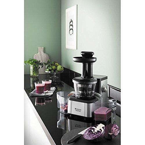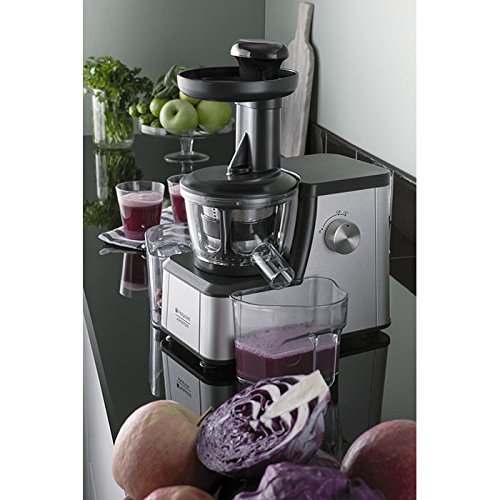 Questo estrattore è ottimo per la preparazione di succhi. Da precisare che non è una centrifuga ma un estrattore a freddo. La potenza abbinata ad un basso numero di giri, permette un grande risultato nel prodotto finale. Si ottengono infatti grandi preparati con scarti minimi ma ricchi di qualità nutritive. Permette anche la lavorazione di frutti o verdure più solide o con la presenza di chicchi. Melograno e uva vengono tranquillamente lavorati senza presentare ostruzioni o difficoltà.