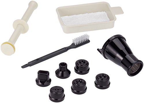 Questo estrattore presenta nella sua confezione in dotazione i seguenti accessori: spazzolino per la pulizia, accessori per trafilare la pasta, due contenitori per succo o scarti.