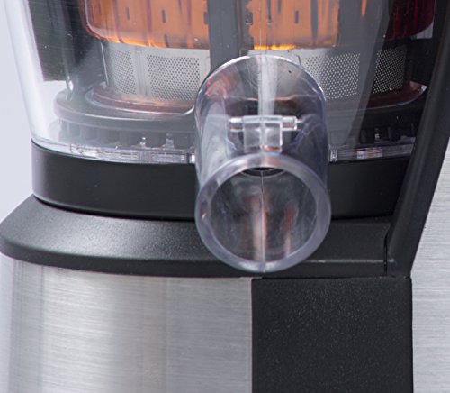Il succo e le scorie vengono automaticamente separati: il succo viene canalizzato nel contenitore raccolta succo tramite il beccuccio, mentre le scorie vengono convogliate nell’apposito contenitore di raccolta. Ciò permette di lavorare una notevole quantità di alimenti prima di dover pulire l’apparecchio.