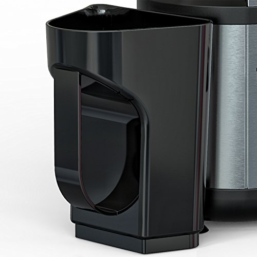 Il filtro in acciaio assicura che nel bicchiere sia versato esclusivamente il succo, mentre i possibili resti di frutta vengono rilasciati separatamente nell’apposito contenitore.